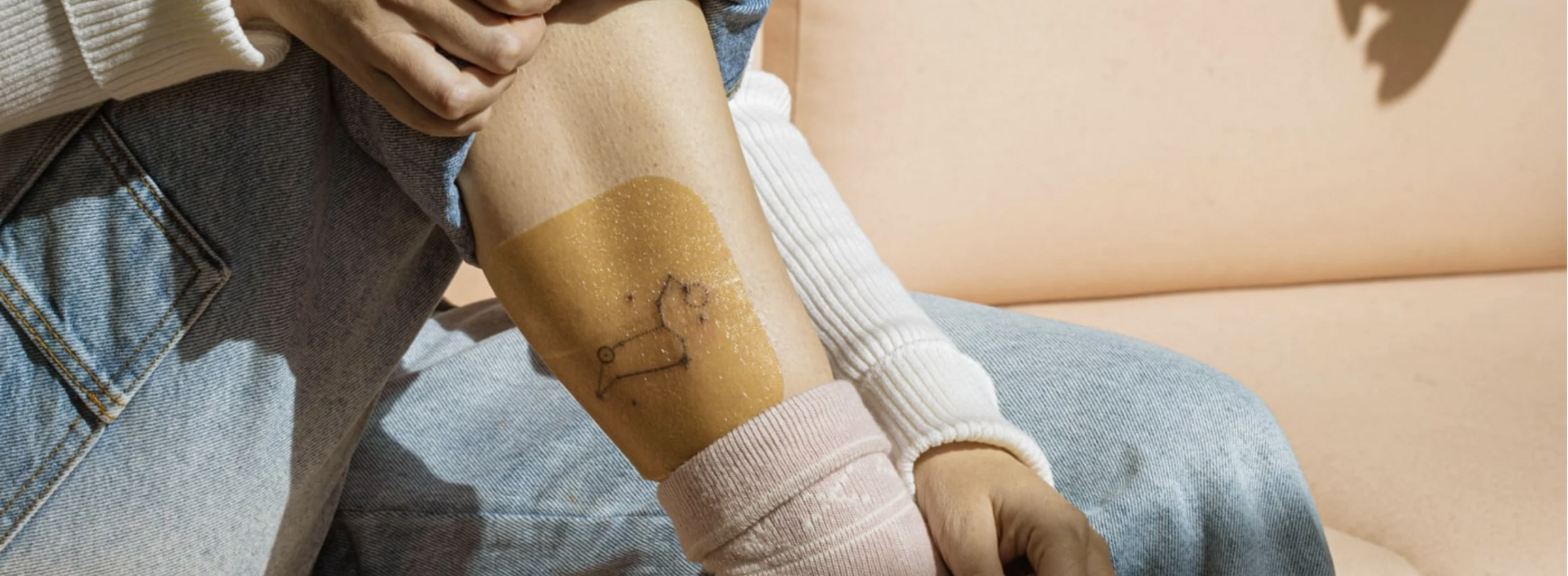 While wearing your Hydrocolloid (HC) patch, you may notice the material absorbing your body’s extra discharged liquid as it starts its first stage of healing. This is very normal in tattoo initial healing. Your body is in its inflammatory phase and working hard to heal the skin. Using the HC patch in the first 3-4 days of healing is essential to providing the best healing experience based on our studies. Following the HC patch, it is most important to keep the tattooed skin clean and moisturized. Proper treatment in the first 30 days contributes to a great Ephemeral for up to 3 years!