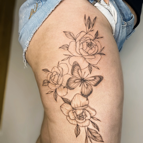 Carley Grace specializes in creating delicate fine line tattoos. Her style of tattooing is soft and dainty, and her designs are carefully crafted to bring out her clients' unique personalities. She is the proud owner of a private studio located in Downtown Bakersfield. Her studio offers a relaxing environment and is designed to provide clients with a personalized and private experience.