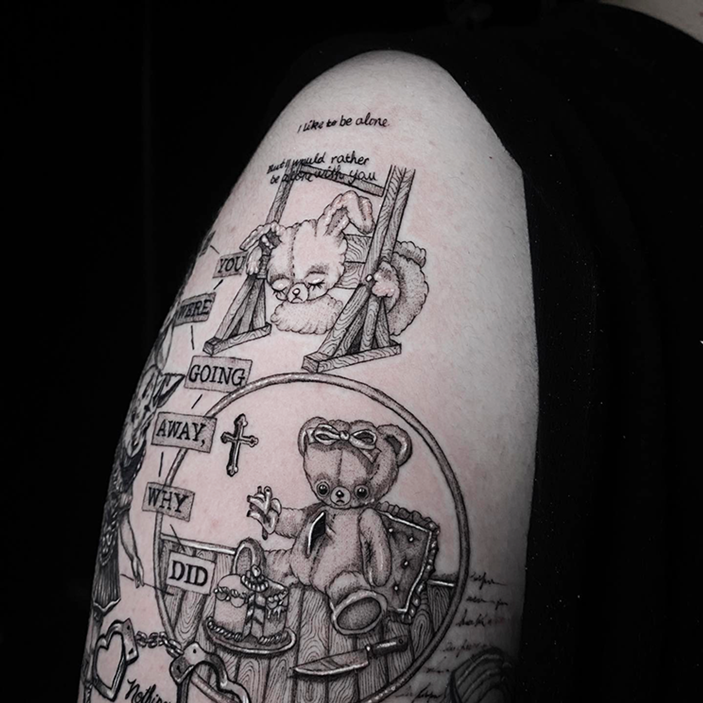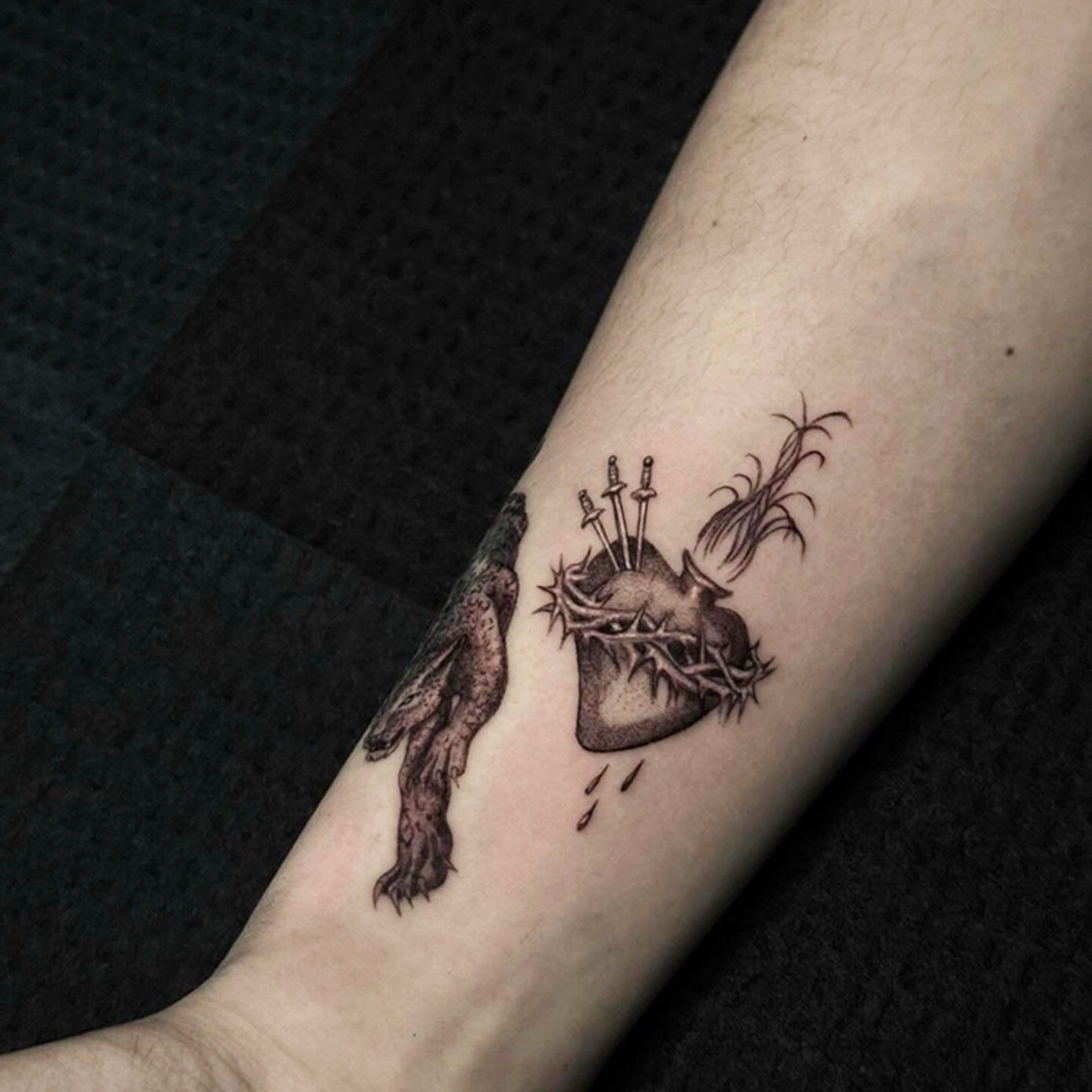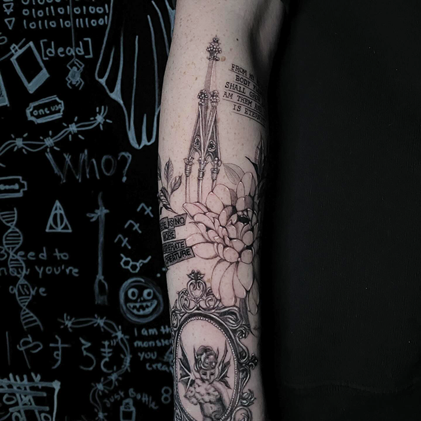 Nadine Harvey is a celebrated tattoo artist renowned for her dark, witchy, and mystical designs. Drawing inspiration from the supernatural, her tattoos are a captivating blend of intricate details and haunting imagery. Her work often features elements like enchanted symbols, eerie portraits, and cryptic texts, creating tattoos that are both visually stunning and deeply evocative.