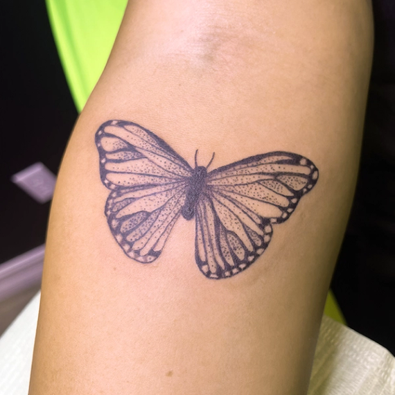 Ally is a tattoo artist who has a love for all things 90s and Y2K. She enjoys tattooing because of the one-on-one connection she builds in bringing her clients' concepts to life. Ally loves creating designs that her clients will cherish forever, or for a little while. She particularly enjoys working with American traditional designs, cartoons, fine line, and dot work.