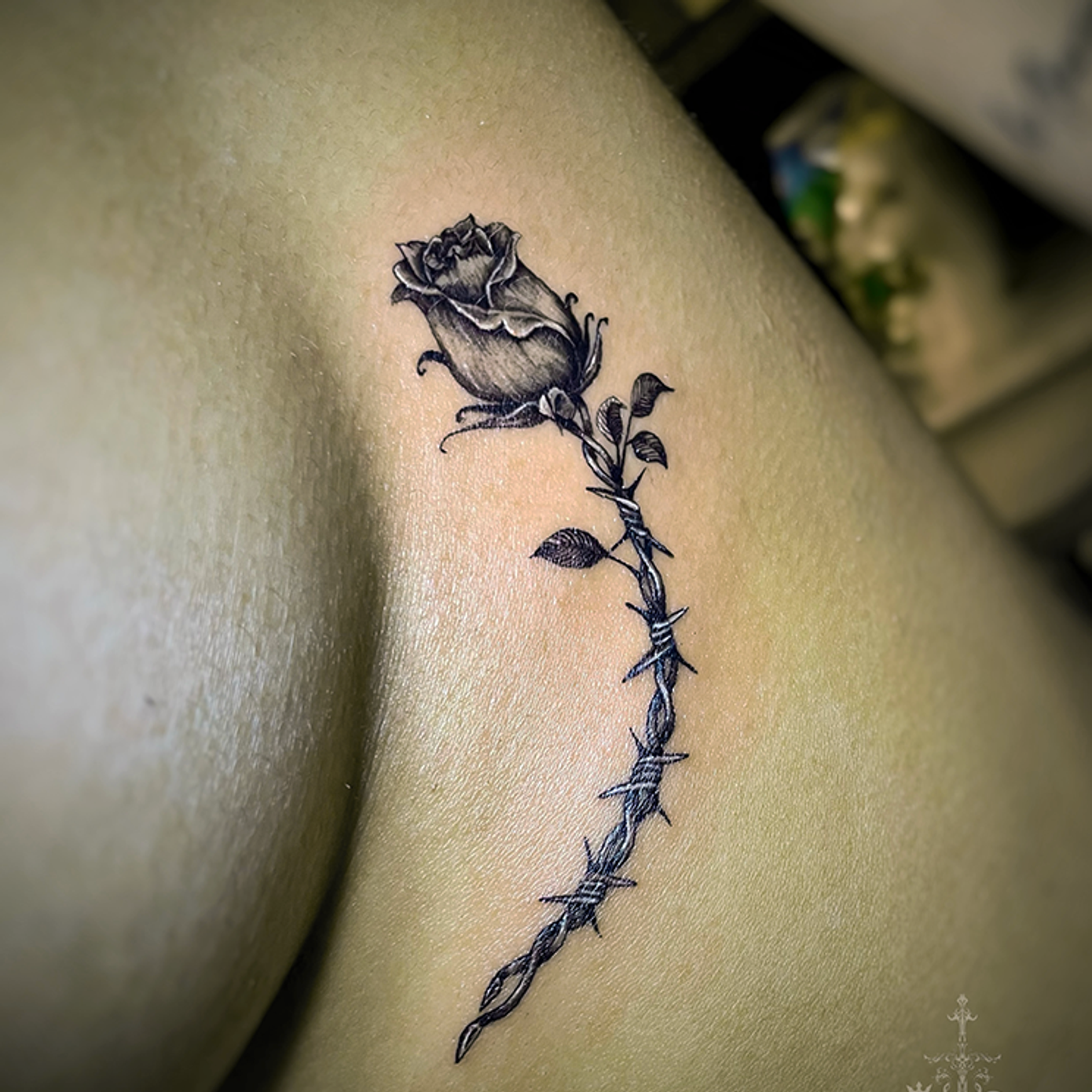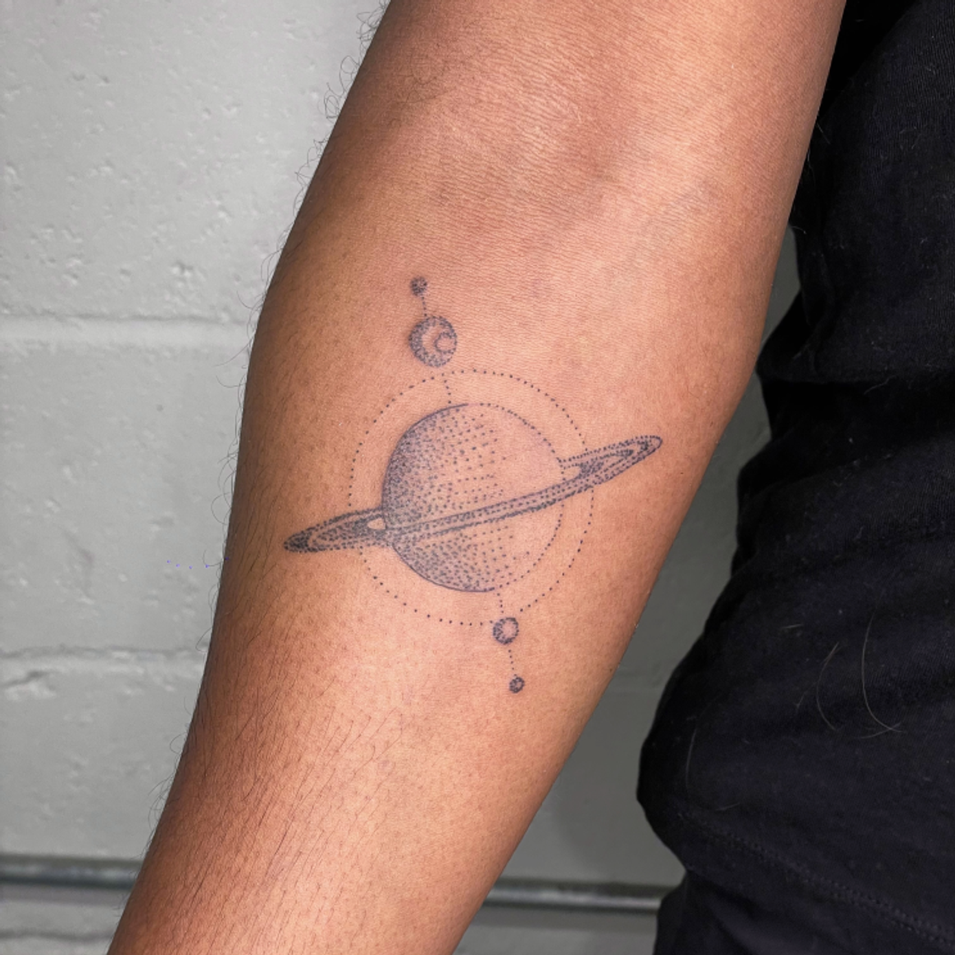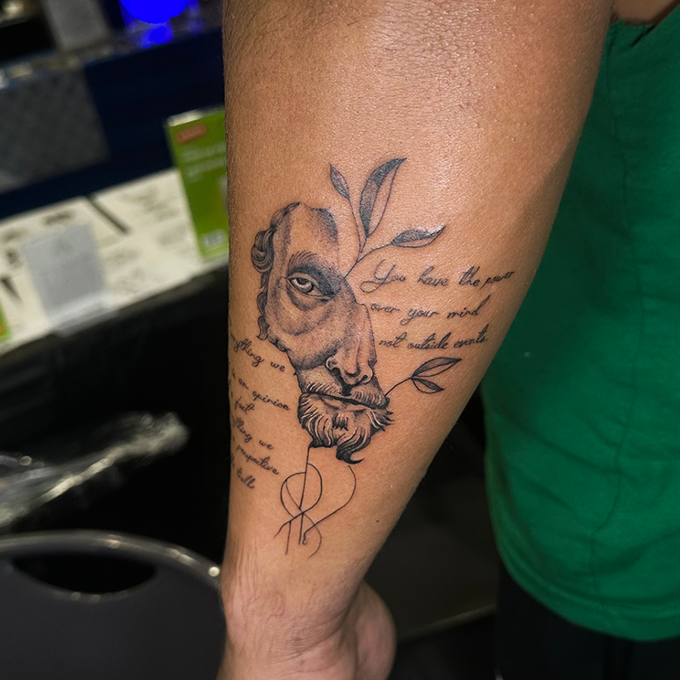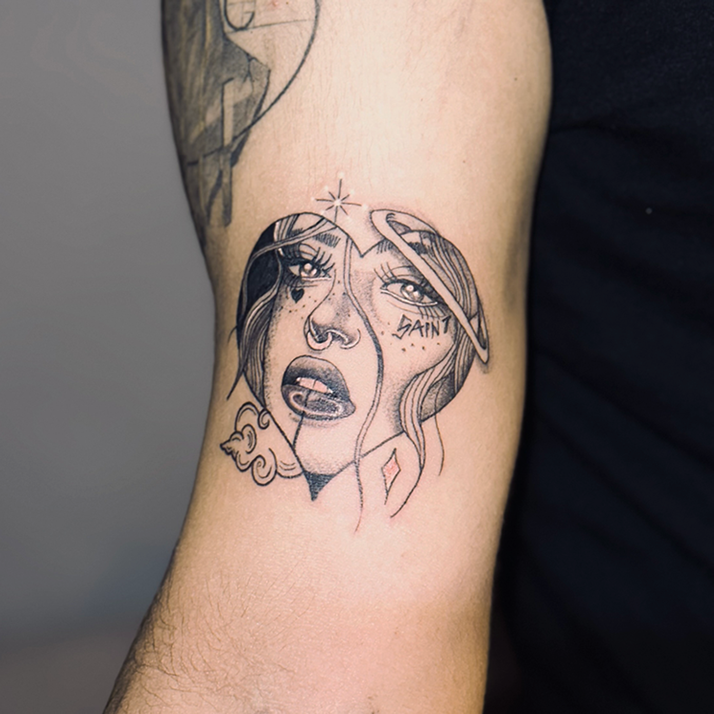Saint started tattooing while in college as an extension of their Visual Arts studies and found Fine Line and Black & Grey/realism tattoos to be an area of specialty. In addition to his visual artist studies, Saint has also been interested in psychology and found tattooing to be a beautiful intersection. Saint prides himself in his ability to communicate with his clients, transforming both shared stories and the client's vision into a tailored, personalized piece of self-expressive art.