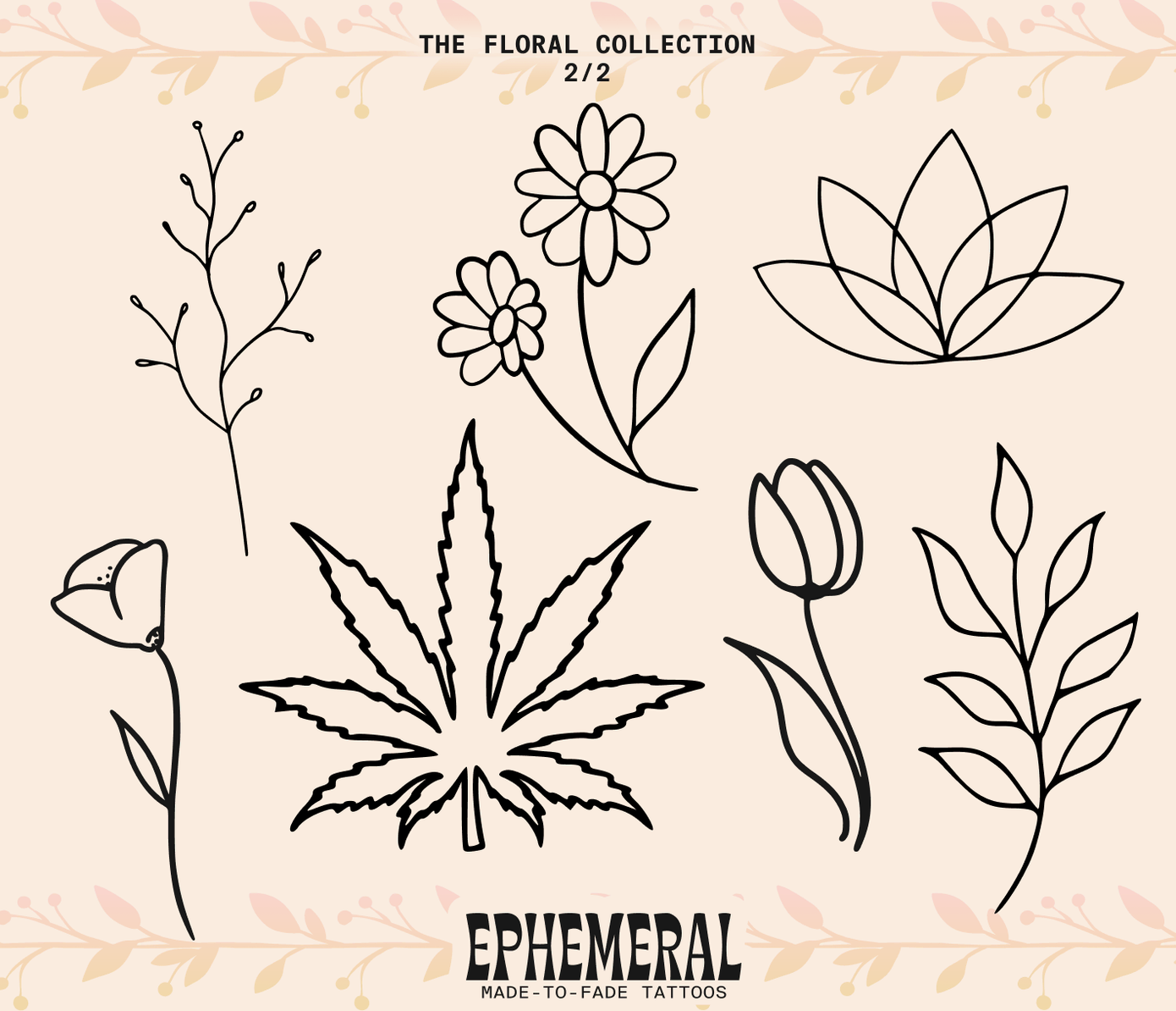The Floral Realness Flash Collection features simple linework floral designs for people who live big. Because out here in the real world, you can be too hot to handle, and whether you’re living the simple life or feeling like a survivor in this amazing race, we’ve got crisp, alluring floral designs for you and your crew.
