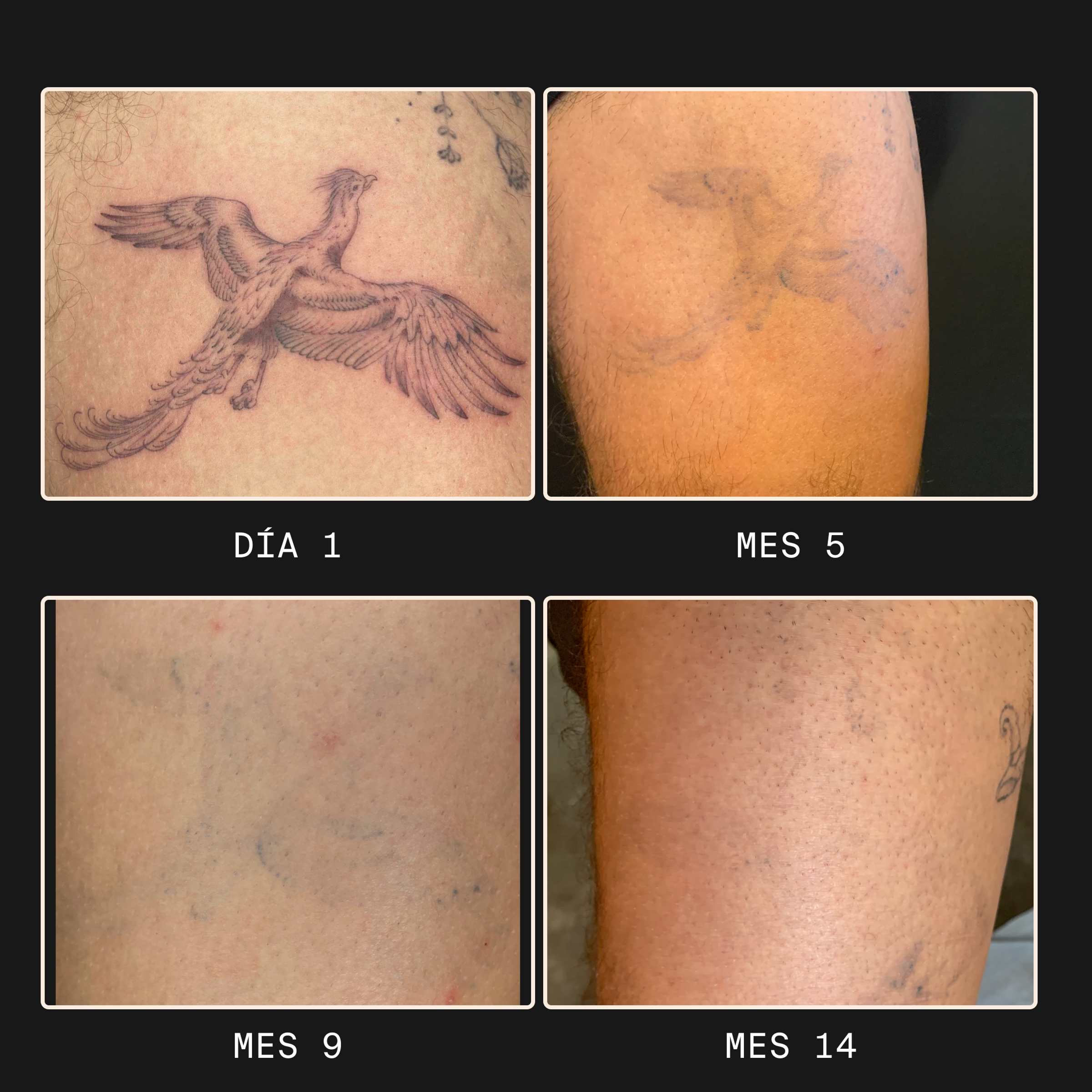 Todos los Ephemerals eventualmente se desvanecerán por completo, aunque el momento varía de persona a persona dependiendo de factores como el tipo de piel, la fisiología y cómo se aplicó el tatuaje.