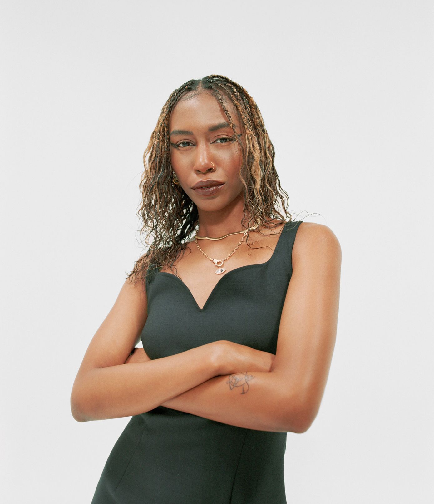 Rhamier’s tattoos also take action by silently playing a role in how the world perceives them. “All my tattoos are political. They are personal, but they also speak to how I fit into society. They all tell a story.” Rhamier’s first Ephemeral is an ode to their Haitian roots, commemorating the year of the Haitian Revolution, 1804, on their neck. The fact that it fades only adds to Rhamier’s way of flowing through life, letting their style change and evolve as they do, at their own personal rhythm.