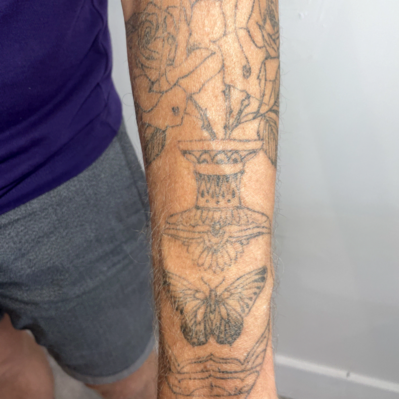 Ephemeral tattoo ink is the first ink designed to naturally fade over time. Exact fade times depend on person, placement, and design, and they always fade away 100%.
